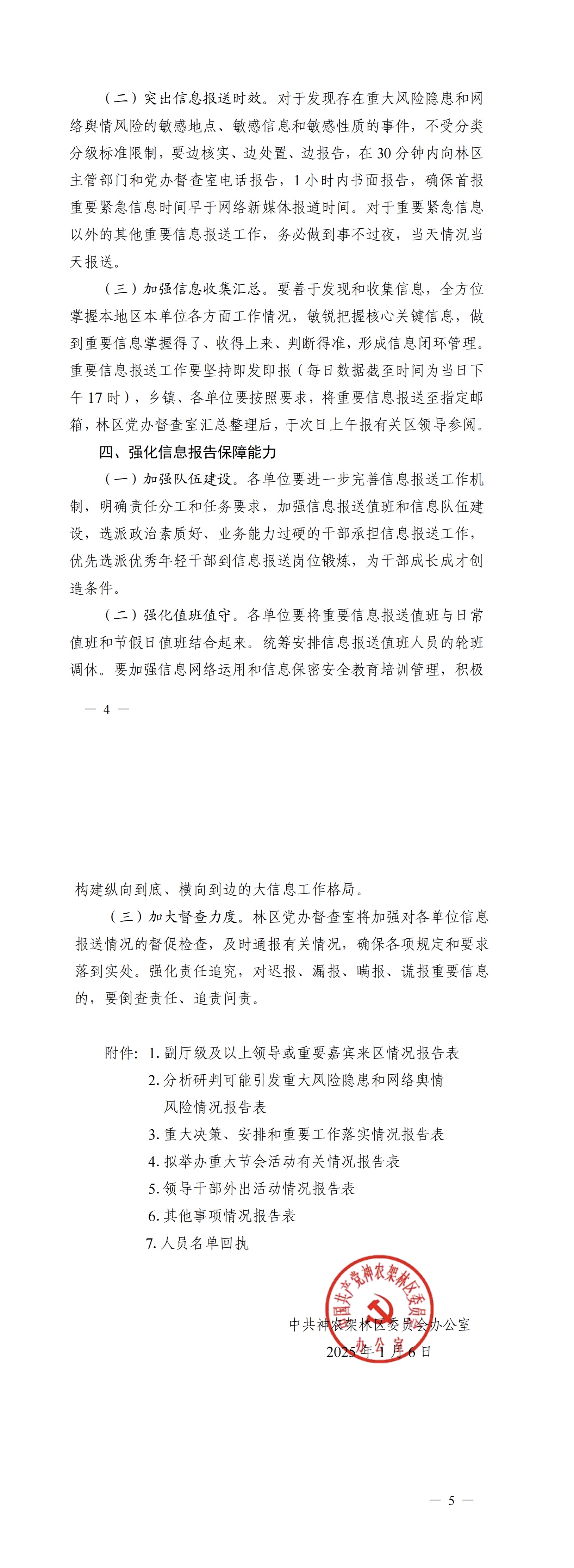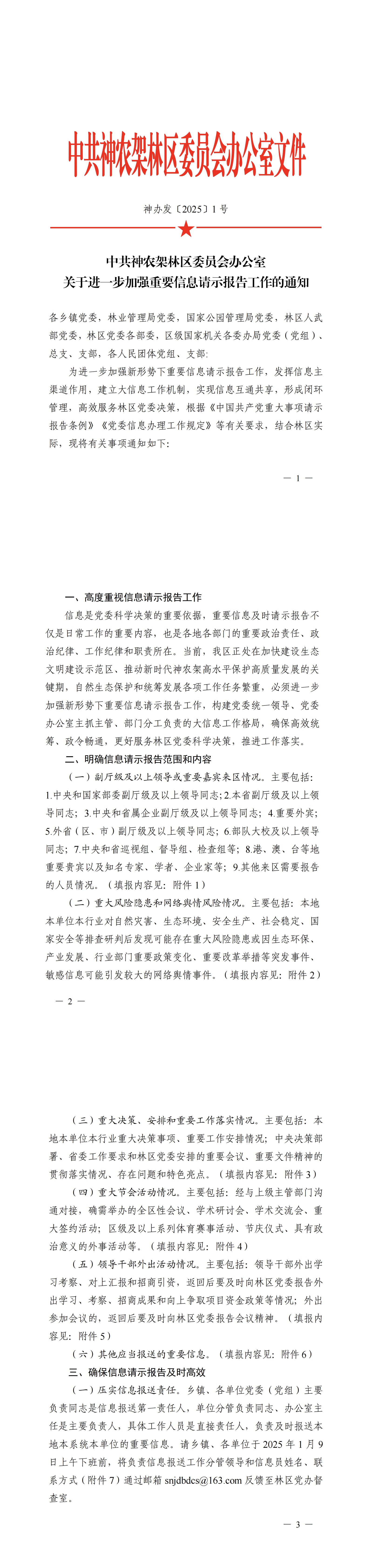 中共神农架林区委员会办公室 关于进一步加强重要信息请示报告工作的通知