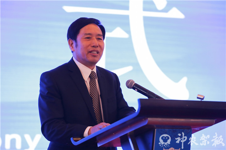 神农架林区党委书记周森锋在致辞中说,党的十九大提出了“实施健康中国战略”,明确要发展健康产业,推动健康中国建设。中医作为中国原创医学,传承千年、长盛不衰,为中华民族的繁衍昌盛和人类健康做出了不可磨灭的贡献。加快振兴中医药和发展大健康产业,已成为普遍共识和共同行动。“神农尝百草,始有医药”,炎帝神农是中医药鼻祖,《神农本草经》是中医药物学理论发展的源头,也是中医药文化的根基。神农架因炎帝神农氏搭架采药而得名,神农架作为举世闻名的“中药宝库,药祖之乡”,更有责任把中医药这一老祖宗留给我们的宝贵财富传承好、发展好。本次论坛搭建一个平台,加强交流合作,促进互学互鉴。我们希望向全世界中医药界专家学者、优秀企业家借智借力,共同推动神农架中药材资源保护与开发,为造福人类健康做出新的、更大贡献。